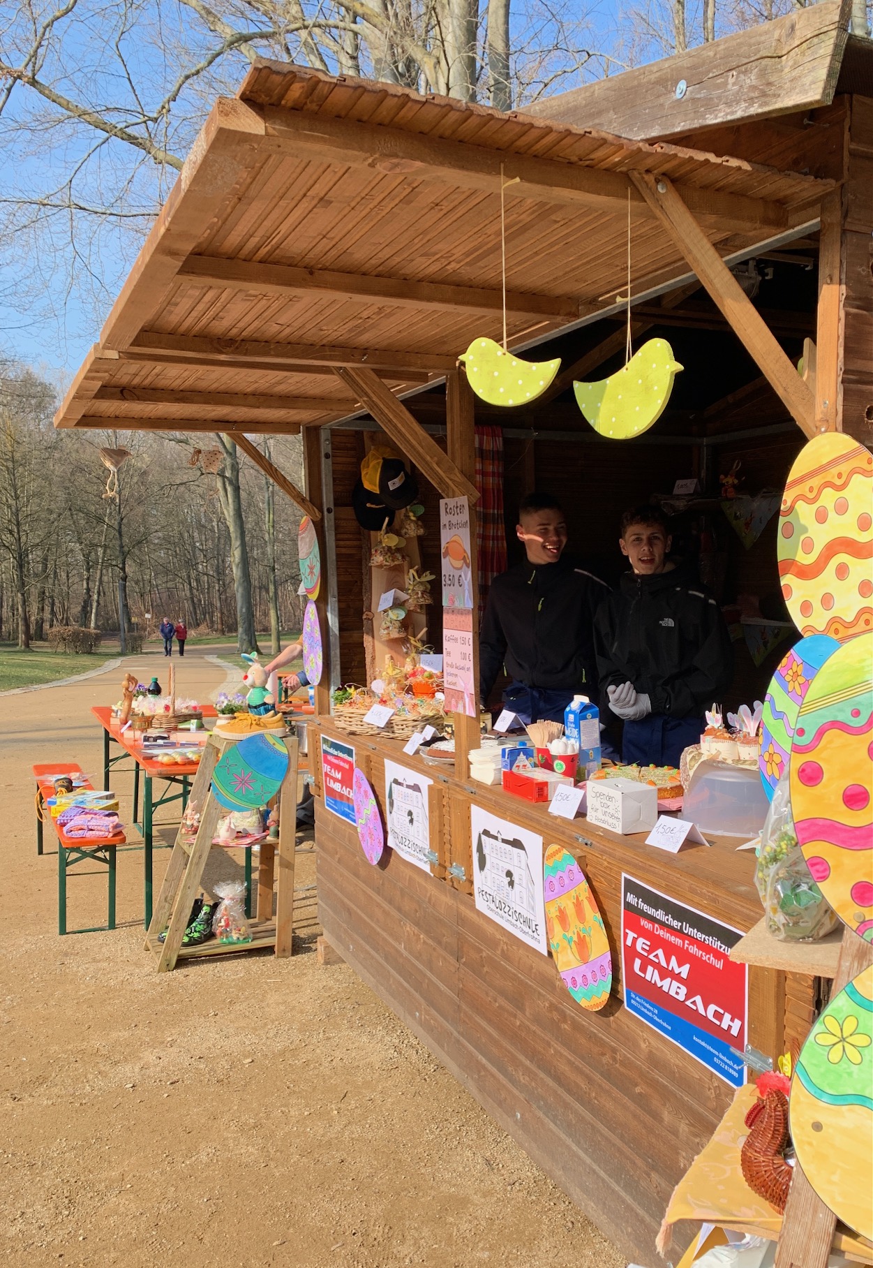 Das Angebot von Rostern, Kaffee, Kuchen und kleinen Ostergeschenken erfreute sich großer Beliebtheit und wurde von den Besuchern des Ostermarktes sehr gut angenommen. Für die Klasse 9b war es eine schöne Erfahrung, gemeinsam etwas zu organisieren und dabei nicht nur Verantwortung zu übernehmen, sondern auch jede Menge Spaß zu haben.